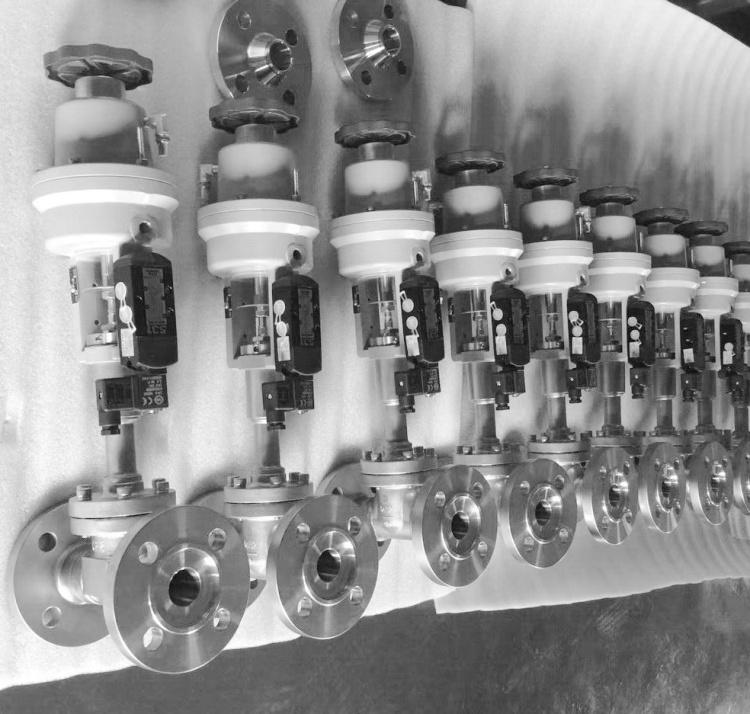 ⒊常開型:氣缸進(jìn)入氣源壓力時,活塞下降帶動閥桿關(guān)閉閥門,開啟時釋放氣缸內(nèi)氣體,活塞在彈簧的作用下帶動閥桿與閥瓣向上運(yùn)動閥門開啟。(特別注意:在氣動關(guān)閉后,必須關(guān)閉前方的手動閥門或者用自身閥體上面的手輪關(guān)閉,防止氣源不足或沒有氣源閥門自動開啟)