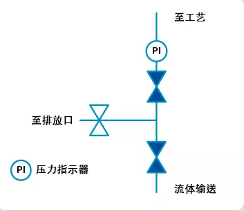 避免僅使用一個(gè)截止閥或不使用備用閥是行業(yè)標(biāo)準(zhǔn)。即使單個(gè)截止閥在閥座上的泄漏極小,但依然會(huì)在維護(hù)的管路中緩慢地積聚壓力,從而造成安全隱患。因此,為在流體管路中實(shí)現(xiàn)隔離,建議采用以下兩種主要配置之一: