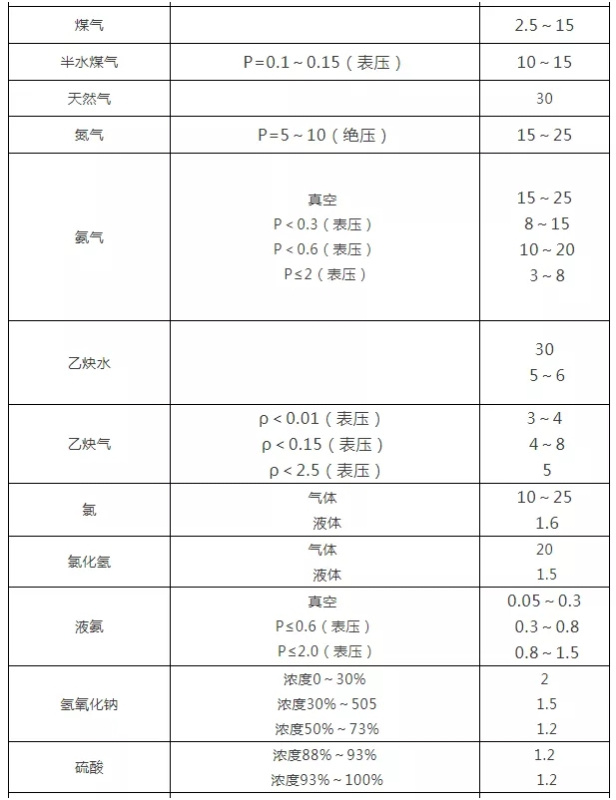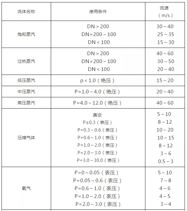 各種介質(zhì)常用流速一覽表